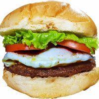 Pão, carne, ovo, queijo, alface, tomate, milho e ervilha.